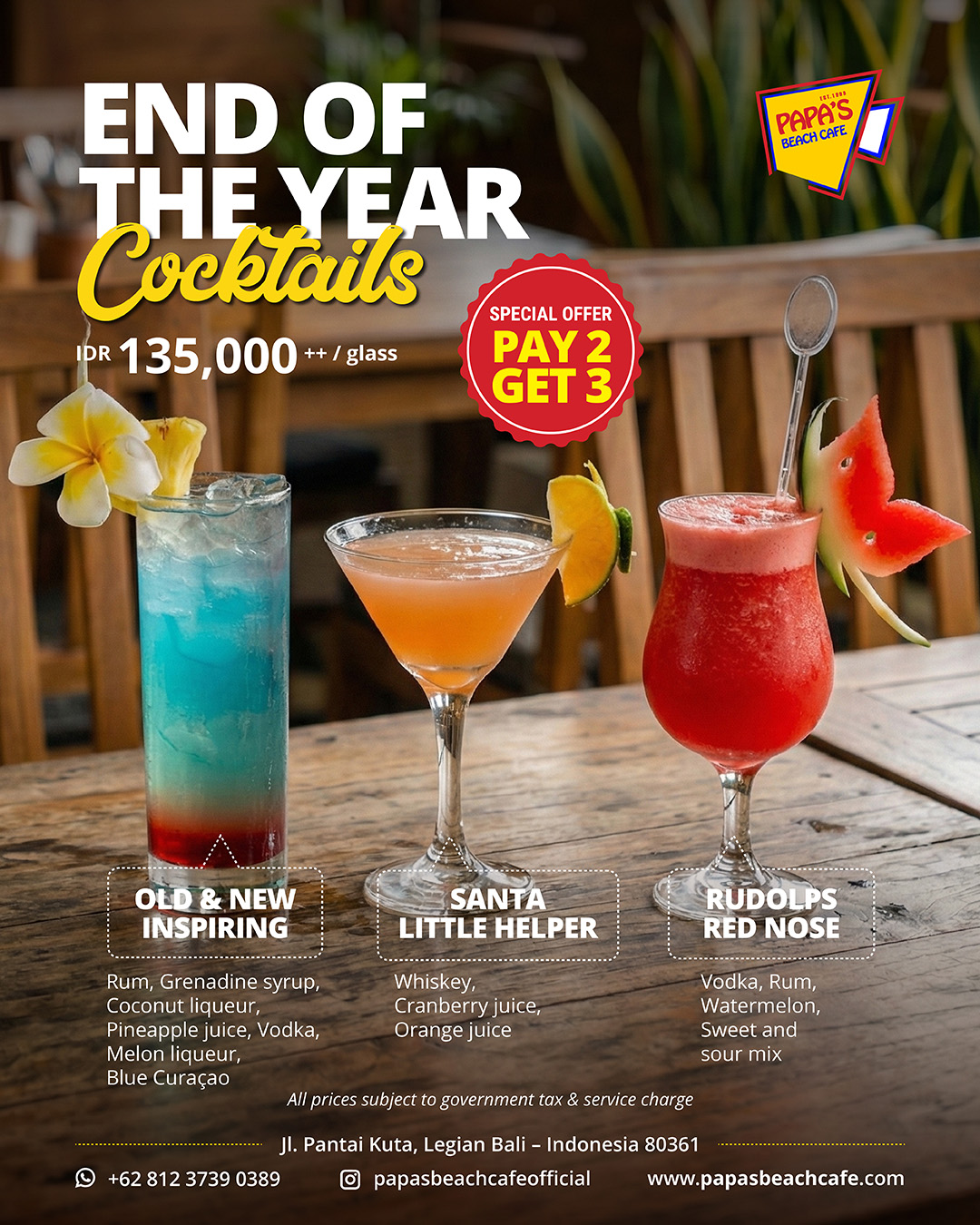 Famous for its Volcano Pizza, the café also serves a variety of cocktails and mocktails, perfectly paired with your meal. We take pride in using fresh produce from Bali’s Bedugul highlands and premium ingredients from Australia, creating a delicious fusion of local and international flavors.